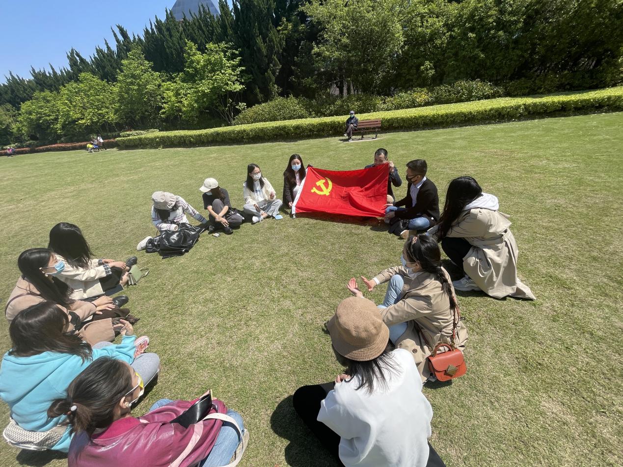 祭拜结束后,支部成员主动聚集在一起交流感想。曾璇同志表示:“龙华精神及背后的故事给予了我很多启发,我们要传承英雄精神,在发扬红色文化的道路上不断砥砺前行!”杨洋同志表示:“忘不了在纪念碑前默哀的情景,忘不了那一句句誓言,我想我会时刻将龙华精神铭刻在心,在今后的学习工作生活中,坚定理想信念,发扬先烈们奋力拼搏、勇往直前的革命精神!”罗海旗同志表示:“一个有希望的民族不能没有英雄,一个有前途的国家不能没有先锋,长眠于此的烈士就是我们这个国家、民族的英雄与先锋。作为新时代的幸运儿,我们要始终牢记革命烈士的崇高信仰,继承革命烈士的伟大遗志,不忘初心向前走,奋力建功新时代!”支部其他成员也纷纷表示在中国共产党100 年的波澜壮阔征程中,正是因为有这些革命烈士,我们党才能团结带领人民取得举世瞩目的伟大成绩,新时代青年要继承先烈遗志,铭记党的历史,为祖国的繁荣强盛贡献自己的力量!