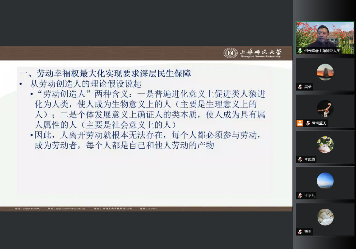 3月18日,在疫情防控的大背景下,伟德国际VICTOR1946马克思主义理论与当代实践研究基地坚持积极为师生构筑在线学习和学术交流平台,邀请了上海师范大学何云峰教授作了题为“美好生活、民生保障与劳动幸福权的最大化实现”的学术报告。报告会以腾讯会议在线开展,由伟德国际VICTOR1946经理王治东教授主持。