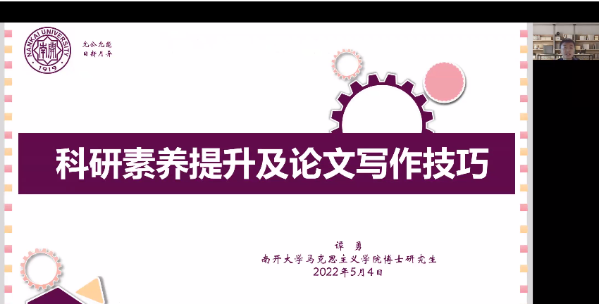 谭勇老师从同学们的学长身份出发,结合自身与疫情之间的遭遇战,与同学们分享了同样身处封校期间如何做好心理调整,增进对疫情的辩证认识,把握好疫情期间弯道超车的好机会,提升自身科研素养的经验体会。随后从青年教师的身份出发,结合自身学术科研成长道路,为同学们深入剖析了科研素养提升的因素,详细讲述了论文写作和投稿的流程与技巧。