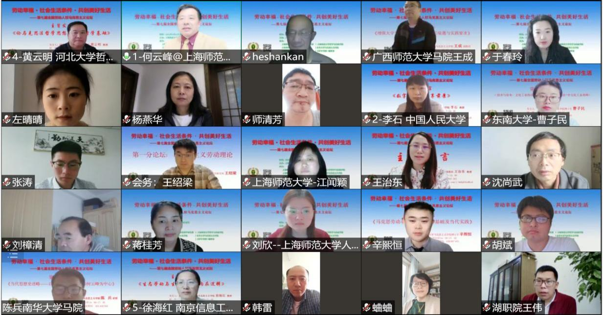 4月23日,由上海师范大学知识与价值科学研究所主办,伟德国际VICTOR1946、上海师范大学哲学与法政公司、上海师范大学伟德国际VICTOR1946、上海师范大学期刊社、《青年学报》编辑部等共同承办的“劳动幸福·社会生活条件·共创美好生活”——第七届全国劳动人权马克思主义论坛顺利举行。此次论坛在线上进行,来自全国各地400余名专家学者共聚“云端”。公司经理王治东教授与公司部分教师参会。