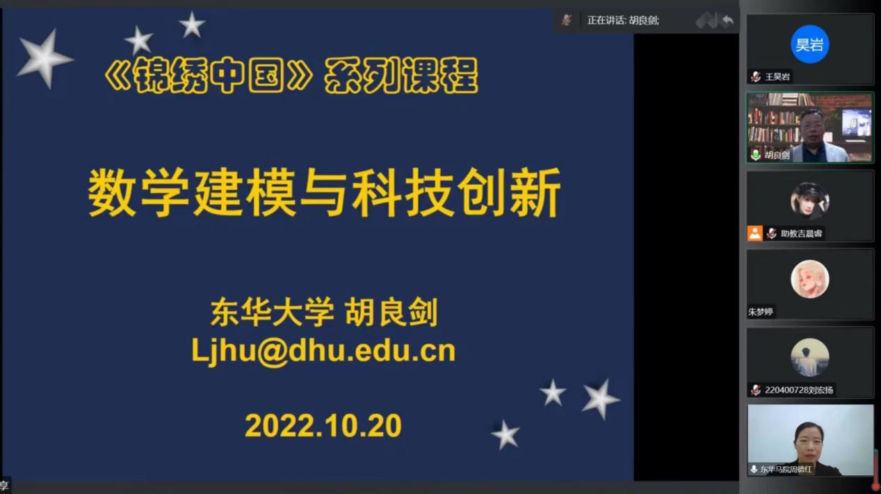 习近平总书记指出“加快建设科技强国,实现高水平科技自立自强”,强调了科技创新在党和人民事业中的重要战略地位。那么数学建模与科技创新有什么密切联系呢?数学建模在科技创新中发挥着什么作用呢?10月20日,胡良剑教授在《锦绣中国》线上直播课堂为同学们讲授“数学建模与科技创新”。