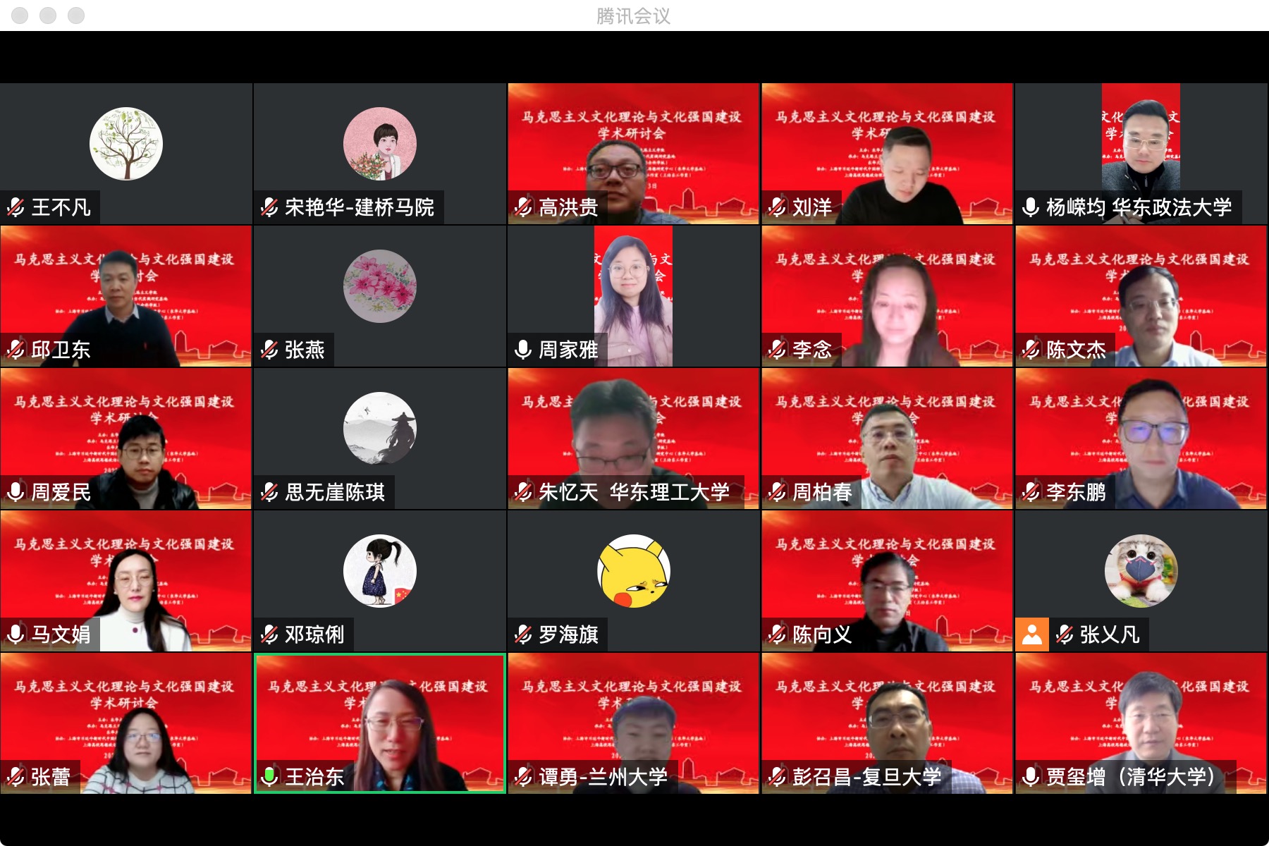 为坚定新时代文化自信自强、推动中国特色社会主义文化强国建设的理论研究,进一步加强学术与现实生活的结合,12月3日,伟德国际VICTOR1946在线上召开了“马克思主义文化理论与文化强国建设”学术研讨会。来自清华大学、复旦大学、上海交通大学、同济大学、华东理工大学、上海财经大学、上海大学、华东政法大学、兰州大学、浙江农林大学、上海建桥公司、上海工艺美术职业公司、山东工商公司、上海音像资料馆等十余所高校、研究机构、媒体单位的50多位师生齐聚“云端”参与本次学术研讨会。与会专家和学者聚焦“马克思主义文化理论与文化强国建设”的重要理论和实践问题展开研讨,提出了一系列前沿性的学术观点。