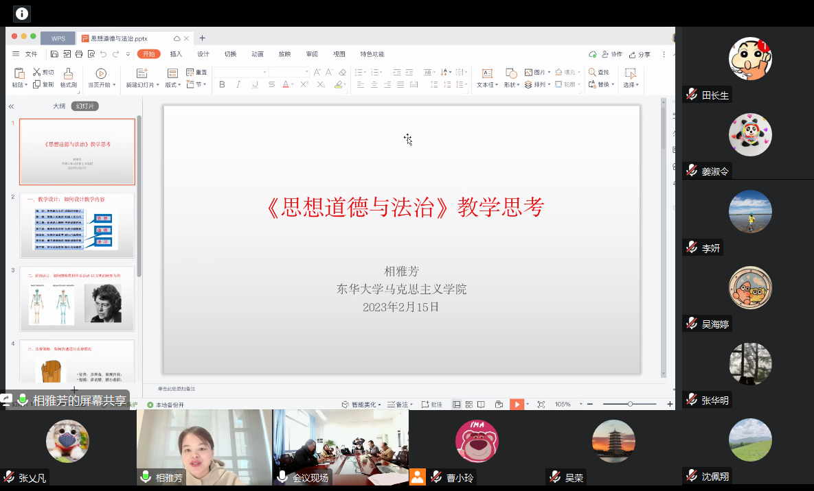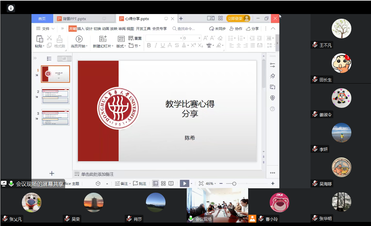 教学大比武特等奖获得者张乂凡老师、王不凡老师分别参加习近平新时代中国特色社会主义思想概论课程组、研究生思政课课程组比赛。张乂凡老师介绍了比赛的流程和节点,表示要高度重视提交的教案材料,教案材料是评委审查打分的重要内容,教学展示做到理论与案例结合,加强赛前演练,注意时间把控。王不凡老师交流时指出要把握研究生阶段教学特点,教学设计要以知识点为基础,通过案例和发问的方式展开,同时结合前沿话题、以递进式提问来引导内容的深入。 2022年上海市思政课教学大比武还有4位老师获得二等奖,他们结合自己所教课程向大家交流了心得体会。陈希老师深入分析教学比赛与日常教学的差异,表示通过日常积累提升比赛水平,同时赛事训练反哺日常教学。李天星老师根据bv伟德国际1946理工类院校员工特点,结合员工专业背景、校史、社会现实等方面提升教学效果,对于教学比赛要恰当选题、巧妙设计,深入交流分享了比赛过程中所要注意的细节。相雅芳老师从教材体系话语转换出发,结合课堂实际案例进行教学展示,分析自身优势和短板,扬长避短,从而快速适应比赛模式。田锋老师从着装、语速、板书等细节方面加强教学比赛反思,从而运用到日常教学中,不断提升课堂教学效果。