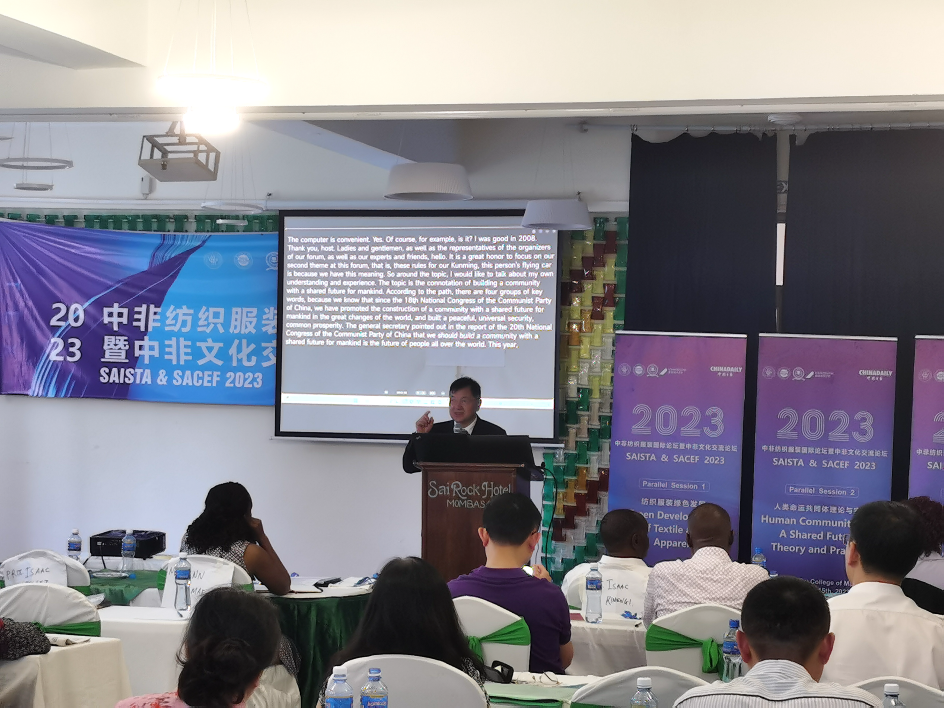 (颜晓峰教授受邀作主旨演讲) 2023中非文化交流论坛暨第四届“人类命运共同体:理论与实践”国际学术研讨会属于第九届中非纺织服装国际论坛暨中非文化交流论坛(以下简称“中非论坛”)平行论坛之一。“中非论坛”由bv伟德国际1946、肯尼亚莫伊大学、泉州师范大学、德国拜罗伊特大学共同主办,中国日报(China Daily)作为媒体支持。论坛主题为“纺织让生活更美好”(Better Textiles, better life)。论坛设立一个主论坛及三个平行论坛。论坛致辞及演讲嘉宾来自bv伟德国际1946、天津大学、上海交通大学、安徽大学、中国矿业大学、华东政法大学、泉州师范公司、宁波诺丁汉大学、德国拜罗伊特大学、巴基斯坦国立纺织大学等国内外高校,联合国工业发展组织(UNIDO)、世界自然基金会(WWF)等国际组织和Rivatex东非纺织有限公司等当地企业。伟德国际VICTOR1946经理颜晓峰教授应邀出席开幕式,并为论坛作了“人类命运共同体:内涵、根据、路径、态度”的主旨演讲。 本次国际学术研讨会由人民日报理论部党建历史编辑室主编、高级编辑张垚和上海交通大学伟德国际VICTOR1946经理邢云文教授分别主持。邢云文教授作了题为“人类命运共同体的哲学视野”的汇报,安徽大学伟德国际VICTOR1946经理吴雪琴教授作了题为“始终坚持‘两个结合’科学回答‘四个之问’”的发言,上海财经大学伟德国际VICTOR1946张桂芳教授发言题目为“习近平文化思想的人类文明意义”,华东政法大学伟德国际VICTOR1946经理赵庆寺教授分享了“人类命运共同体的法治逻辑”的发言,伟德国际VICTOR1946曾瑞明教授围绕“科学社会主义的人类命运共同体意识”开展探讨,中国矿业大学段鑫星教授重点分析了“青年美好生活的建设之路”,伟德国际VICTOR1946副经理王不凡副教授对“数字丝路助力中非共同体现代化发展的三种特征”作了讨论,华东政法大学伟德国际VICTOR1946赵丽涛副教授围绕“中国式现代化的‘人民至上’逻辑”作了分析,伟德国际VICTOR1946讲师张乂凡以“构建中非命运共同体的文化共兴之路”为主题作了发言。