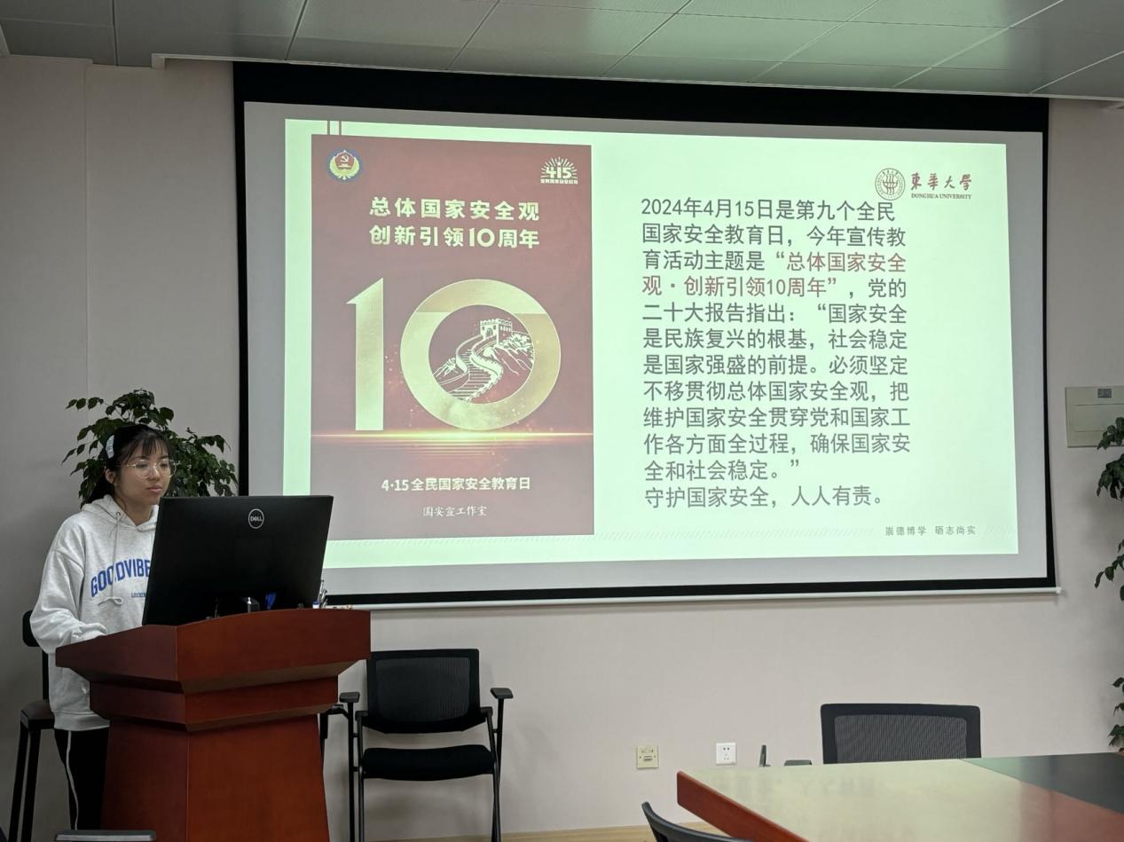 宣讲结束后,同学们围绕国家安全主题畅所欲言,展开积极讨论。青马社社长王明玮表示,国家安全无小事,每个人都责任重大,我们要更好发挥理论型社团的优势,带头认真学习习近平总书记提出的总体国家安全观,做好学习的引领示范。党员王子晋和徐思佳分别从全球化、信息化和“两个一百年”奋斗目标切入,阐述了当今时代国家安全所面临的前所未有的挑战和具备的极大重要性,认为作为青年党员我们必须时刻保持清醒头脑、忠诚履职尽责,确保国家政治安全和社会稳定。