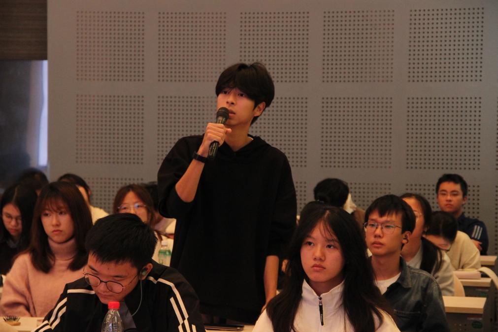 在交流互动环节,同学们围绕人工细胞伦理边界、技术产业化前景、多学科交叉融合等踊跃提问,周永丰教授一一细致解答。对于课程讲座同学们纷纷表示收获满满,如信息与智能科学公司武静怡同学谈到:“当科学家如同程序员般设计和构建生命体时,这不仅是技术的胜利,更映照出人类对创造与掌控的渴望。合成生命不仅是科学前沿,更是哲学与伦理的试金石。”材料科学与工程公司孔雨婷同学表示:“周教授的讲解让我对合成生命有了全新认识,从‘辛西娅’到各类模型细胞,让我看到了材料科学与生命科学交叉融合的无限可能。”