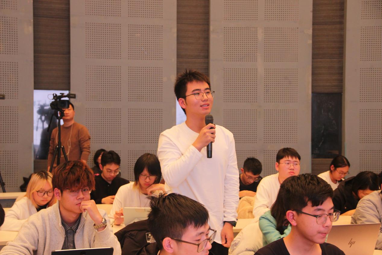 在交流环节,同学们围绕人工智能伦理、国产芯片发展、AI与行业融合等话题踊跃提问,汪玉教授一一细致解答。讲座不仅是一场前沿技术分享,更是一次关于科技自强、产业变革与时代责任的深度对话,同学们纷纷表示获益良多。纺织公司梁晓涵同学表示:“汪老师的讲座让我真切感受到AI不仅是国家战略,更是触手可及的未来工具。我国在能源与数据方面的优势如何转化为算力优势,是我们这代青年需要思考和实践的命题。”信息与智能科学公司雷洪同学谈到:“汪老师对AI发展历史的梳理让我认识到这项技术的来之不易,‘智能体’‘具身智能’等新概念也让我对专业学习有了更明确的方向——希望能为祖国在人工智能领域的发展贡献自己的一份力量。”